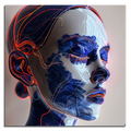 A face where thought becomes light. Neural Bloom traces the contours of consciousness through glowing filaments and cloud-like textures. The vivid blue and red lines evoke a blooming neural network—alive, intricate, and emotionally charged. It’s a portrait of inner complexity rendered in digital elegance.