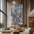 The surface suggests black ice, with the white lines capturing the tension and crackle of frost under a powerful light. The darkness is almost total, making every white line a statement. The chaotic distribution of the pattern adds an element of untamed nature. An elemental, tension luxury acquisition, perfect for contrasting with light wood furniture or warm metals.