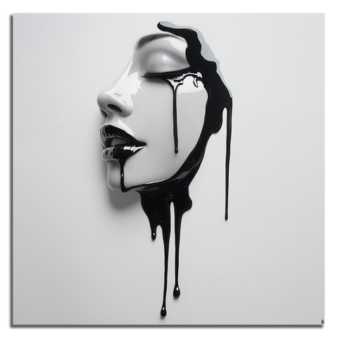 Beauty pulled downward by weight. Gloss and Gravity explores the tension between surface perfection and emotional collapse—where the glossy face remains intact, but the black drips betray a hidden heaviness.