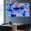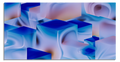 Geometry and softness in perfect tension. The design features a structure of floating cubes that seem carved from frosted glass, with their faces warped by an internal light flow and color. The cool palette of blues and purples lends a sense of futuristic technology and glacial luxury. A cutting-edge design statement that breaks linear monotony and adds exquisite visual complexity.