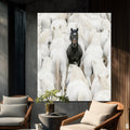 In a sea of immaculate white, one figure stands, unique and powerful. This work celebrates the courage of individuality and the beauty of standing out with elegance. A visual contrast as bold as the black panther in the collection.