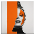 Silence isn’t always gray. This piece speaks through contrast—where a single burst of orange disrupts the stillness of monochrome. It’s a quiet rebellion, a whisper that becomes a roar. The face remains poised, but the color tells another story.