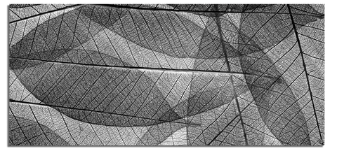 "Leaf Skeleton" is a black-and-white macro-photograph of multiple overlapping skeletonized leaves. The fine veins and curved contours create a deep and complex visual texture, where light and shadow intertwine. This piece is a statement of organic sophistication and textural minimalism.