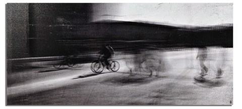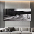 An artwork that explores visual rhythm and structure. "Perspective of Light" features a composition of vertical bars, or architectural slats, alternating rhythmically. The angular perspective and high black and white contrast accentuate the deep shadows behind the light slats, creating a dynamic illusion of depth and a constant visual pattern.